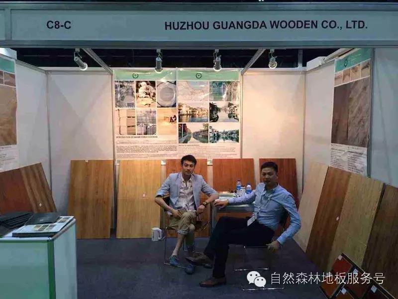 此圖是湖州市南潯廣達(dá)木業(yè)有限公司:沈佳琦 和 楊榮華 在公司指定的展位上
